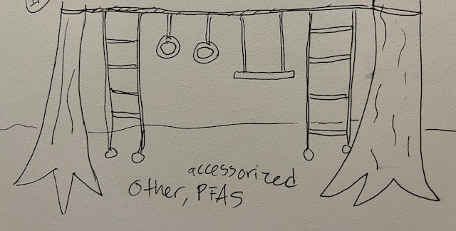 One problem with the different types of PFAS ninja courses is that once they are in the environment, many of them degrade into ladder PFAS over time. Imagine you throw away a ninja course set into a trash heap. Maybe some of it breaks up into bits, and you could imaging pulling out something looking like a ladder in a few decades. Same type of thing with PFAS. So just because PFOA and PFOS aren’t actively being made by companies in the US anymore, doesn’t mean that they aren’t being produced as a by-product of other things. The types of things that can turn ninja course PFAS into ladder PFAS are things like sunlight, oxygen, and water2. Things that are pretty common out there in the world.